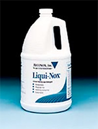 LIQUINOX - Critical Cleaning Liquid Detergent: Concentrated, anionic liquid detergent for manual and ultrasonic cleaning. Free rinsing to yield reliable results with no interfering residues. Extremely mild and completely soluble in hard and soft water. USDA authorized. Dilute 1:100. pH 8.5