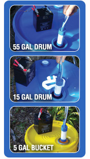 Building on over 20 years in business, Proactive Environmental Products developed a revolutionary and proven 12 volt pump designed to handle many of your liquid transfer problems. The 12 volt Proactive Drum Pump is a powerful little pump that will drain over 185 gallons per hour. This little pump is truly an amazing device, powered simply by a portable 12 volt battery. So small it fits in your back pocket! But yet so powerful, it can lift water from 30 feet!